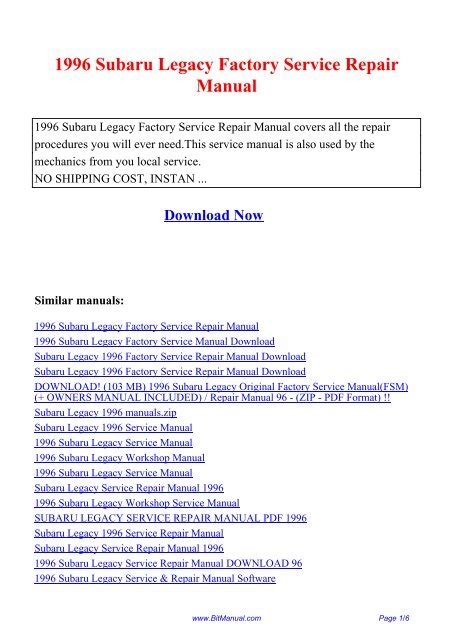 At present you are looking with regard to an 1996 Subaru Legacy Factory Service Manual example of which we provide here in some kind of document formats like as PDF, Doc, Energy Point, and in addition images of which will make it easier for you to create an 1996 Subaru Legacy Factory Service Manual yourself. For a better look, you are able to open a few examples below. Each of the illustrations about 1996 Subaru Legacy Factory Service Manual about this web site, we get from several sources so you can create a better record of your own.